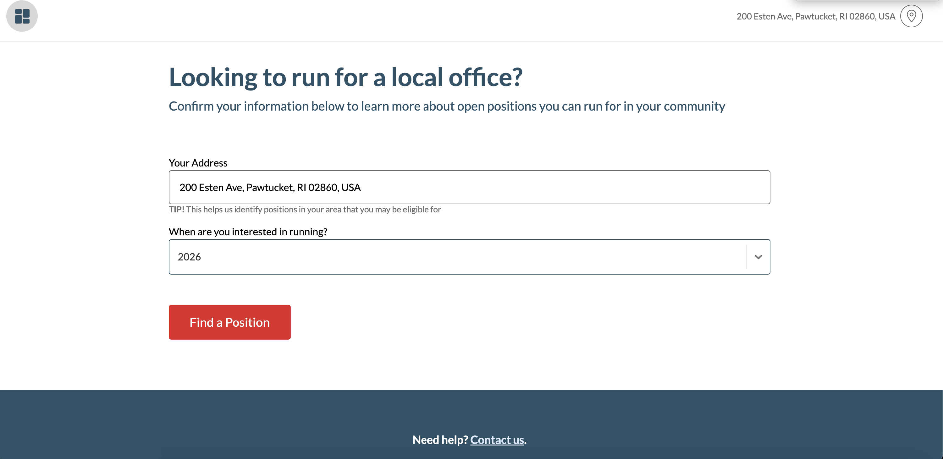 When users click on the tile, they can update their address and choose a year they are interested in running for office.